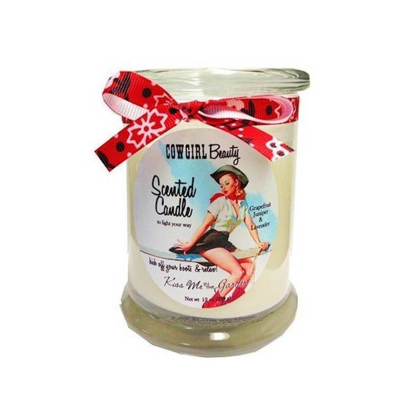 Now you can get our famous Western Girl fragrance, which includes grapefruit, juniper and lavender essential oils designed and made by premier fragrance artists with this awesome soy mix all natural jar candle. This long burning candle has our delightful western girl decor that your favorite cowgirl will love. As with all our awesome all natural skincare products, our candles have been made in the USA.