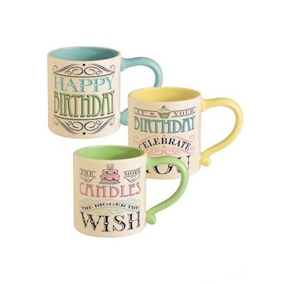 Our fantastic birthday coffee mug Birthday Wishes will make a fabulous birthday gift. Choose from three styles (top to bottom): blue says, Happy Birthday