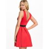 Night of Red Hot Romance is a sleeveless red mini dress that features knit fabric with a full pleated skirt. There are black lace panels at the waistline, a black belt at the waist and a zipper in back.