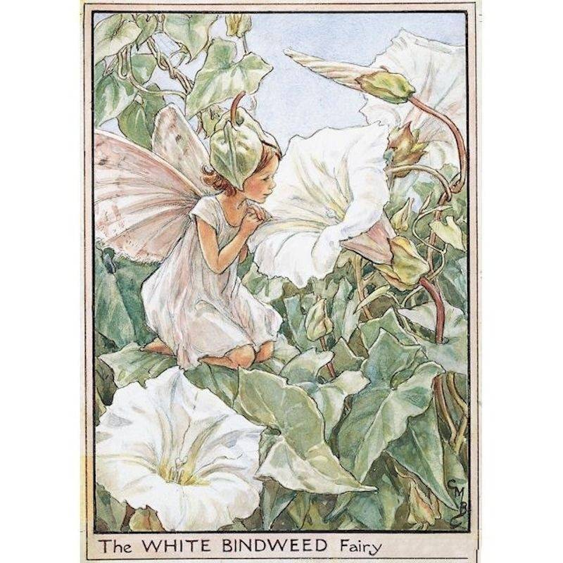 Our fabulously enchanting flower fairy represents the White Bindweed flower and is magnificent fantasy art created by Cicely Mary Barker. There is full cork backing on this ceramic tile fairy picture and you can hang it as wall art using the enclosed ribbon.