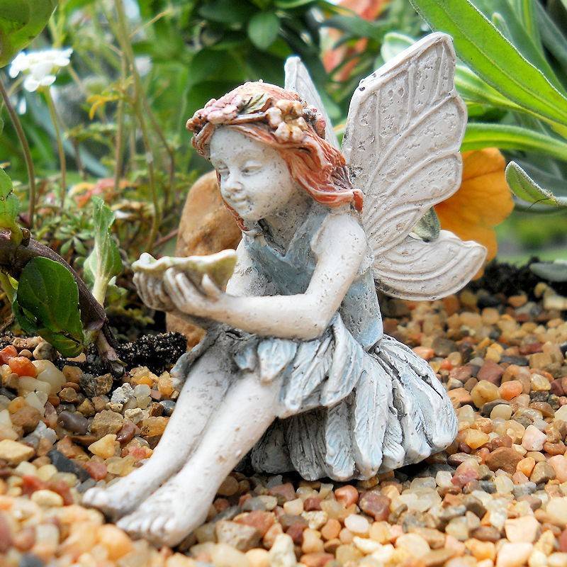 Our charming Amie fairy garden figurine measures 2 inches tall and 2.25 inches wide.