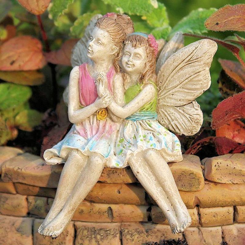 Celebrate your love for your sister with this adorably charming fantasy art miniature fairy figurine entitled, My Sister, My Friend. Measuring 3.25 inches tall, the pair of sister fairies sit together hugging and holding hands. Colorful dresses add additional magic to this miniature fairy garden figurine that is perfect for any garden or potted plant.