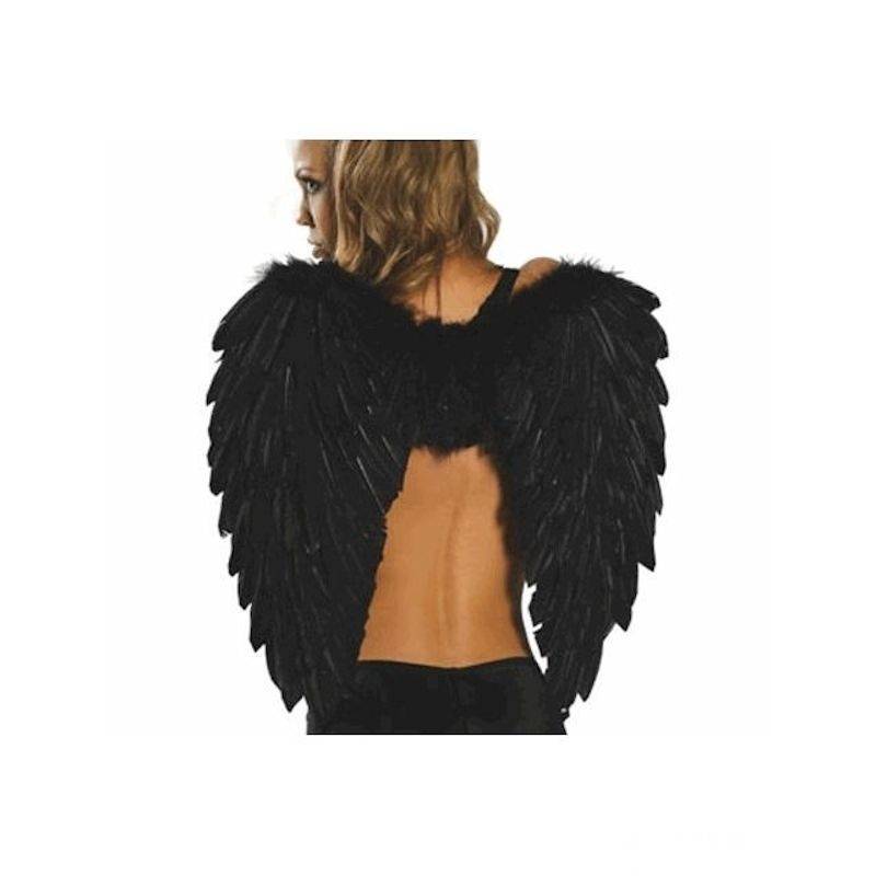 This pair of real black feather wings feature central large black feathers with black fluffy feather trimmed edges. The wings are bendable so they can be adjusted or opened as desired. The amazing effect will magically turn any clothing you wear into a sexy costume used as a fairy costume or angel costume for Halloween.