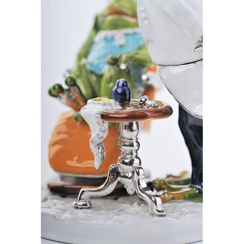 Bright coloring adds whimsical charm to the dentist frog figurine that features .925 silver and 24 karat gold accents, Swarovski crystals and measures 4.25 inches tall and 4 inches wide.