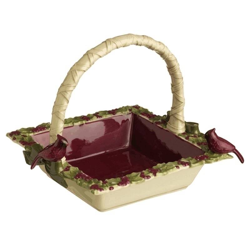 Grasslands Road Christmas Serving Bowl or Ceramic Basket Cardinal Figurine