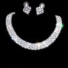 Each clear rhinestones gleams with brilliant sparkles and color when kissed by light. The matching rhinestone earrings are in a diamond shape and feature the same glistening rhinestones making this jewelry set the ultimate addition to any couture collection.
