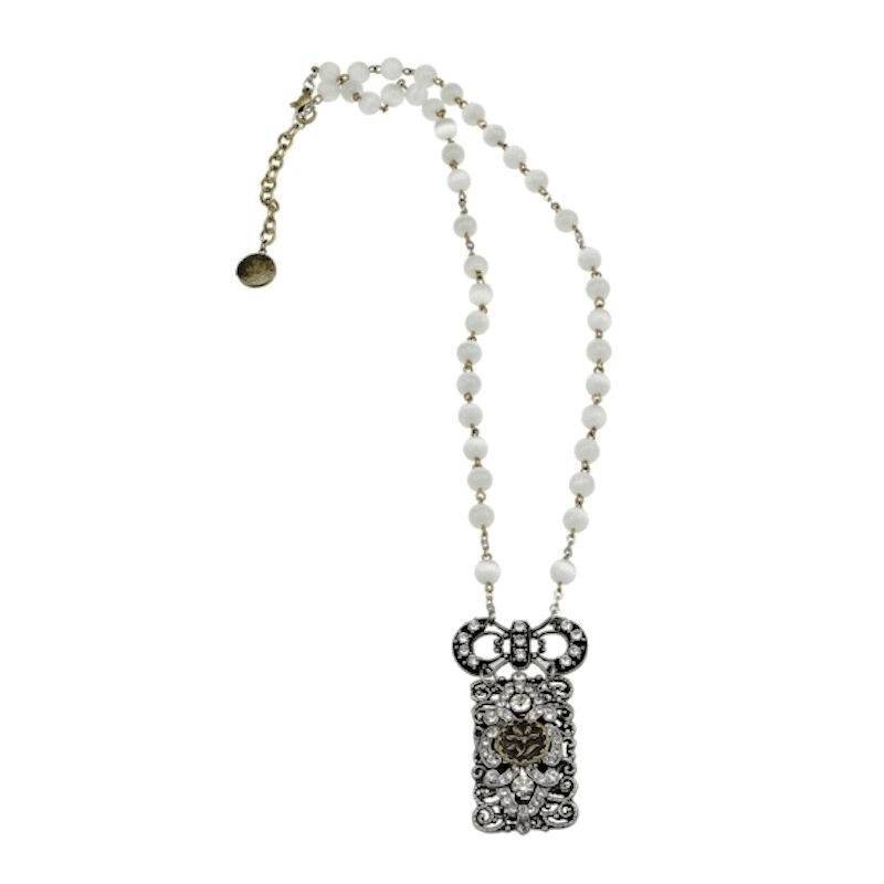 This Crystal Fantasia pendant necklace features a stunning chain with gemstone beads in white and a delightfully gorgeous pendant of filigree metal full of brilliantly glittering crystals.