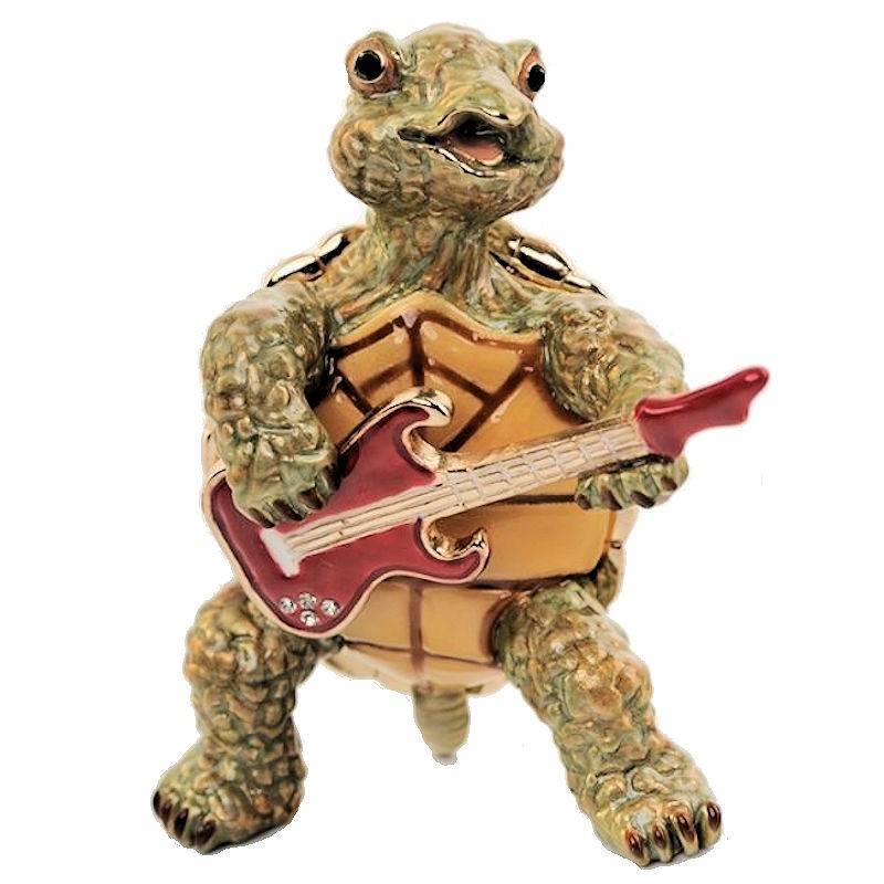 Playing Guitar Turtle Figurine Trinket Box by Keren Kopal