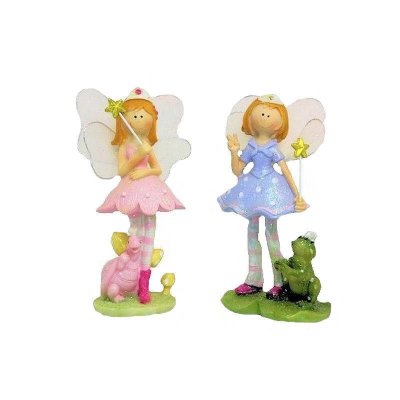 Our small fairy and companion figurine measures 4 inches tall and are each sold separately.